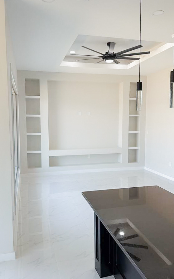 This available beautiful Sevilla Alternate home is a stylish one-story home with three bedrooms, two bathrooms, and a two-car garage, featuring a walk-in pantry and an interior washer and dryer room. Designed with high ceilings and elegant finishes, including marble, granite, and quartz, it offers a bright and sophisticated living space.