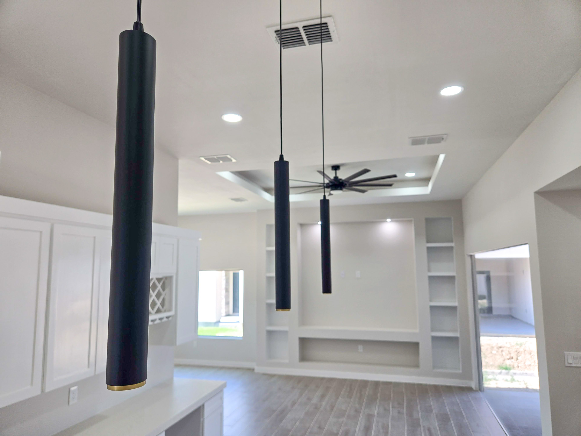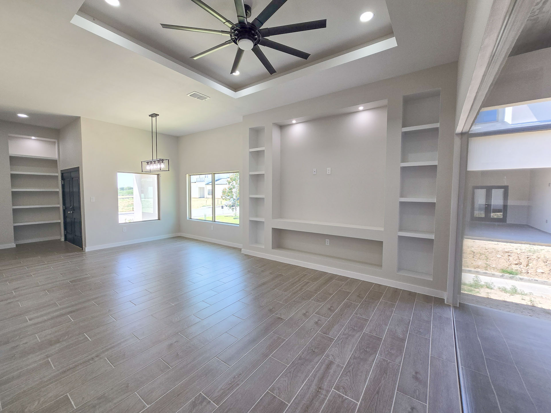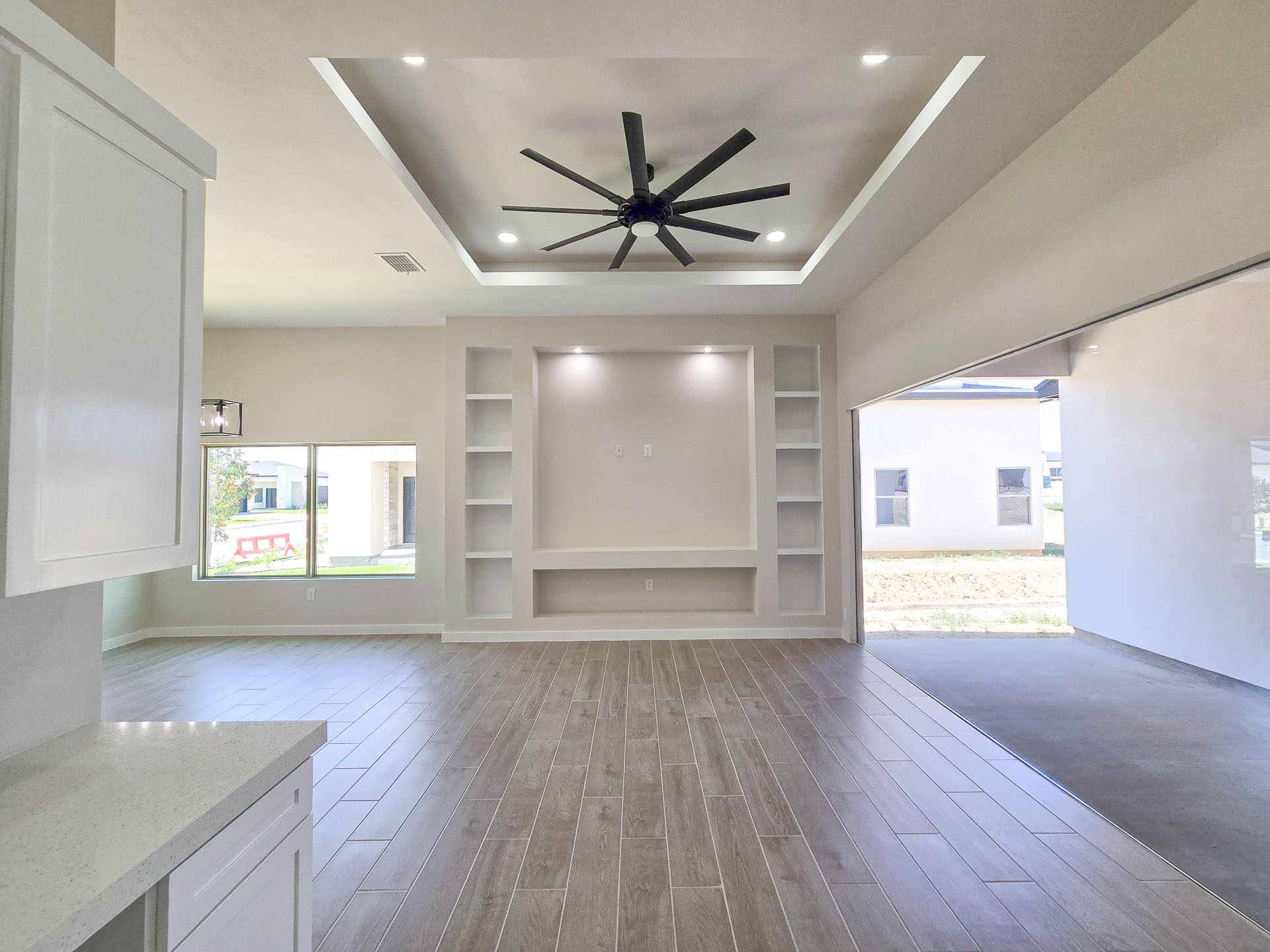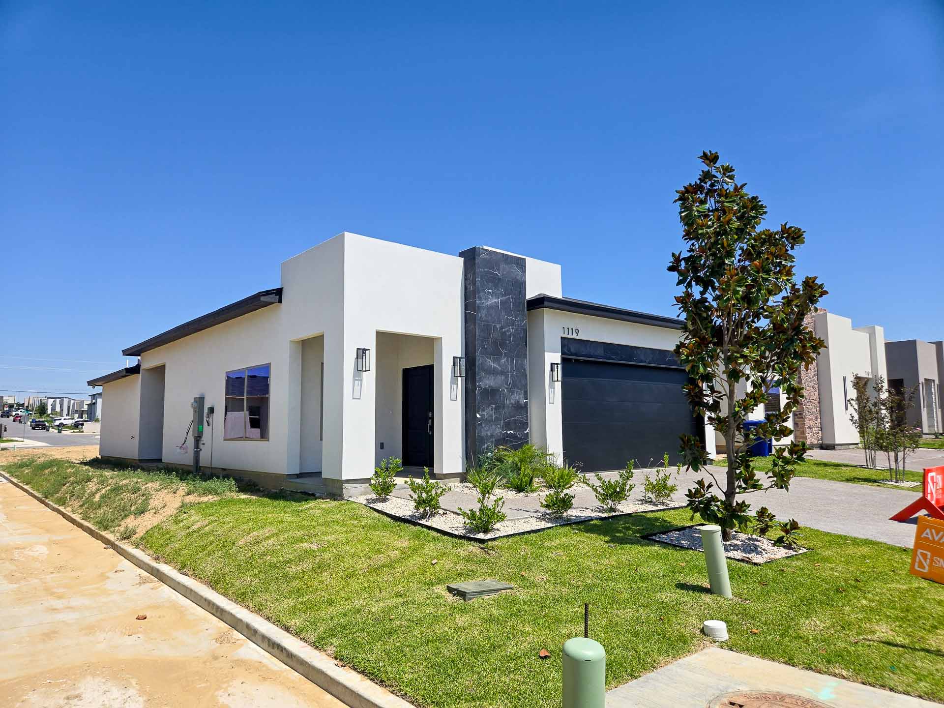 New one-story home at 1119 Morocoy Drive, in Los Presidentes East, with three bedrooms, two bathrooms, and a two-car garage. This model offers high ceilings with design elements that allow natural light ambiance throughout the house.