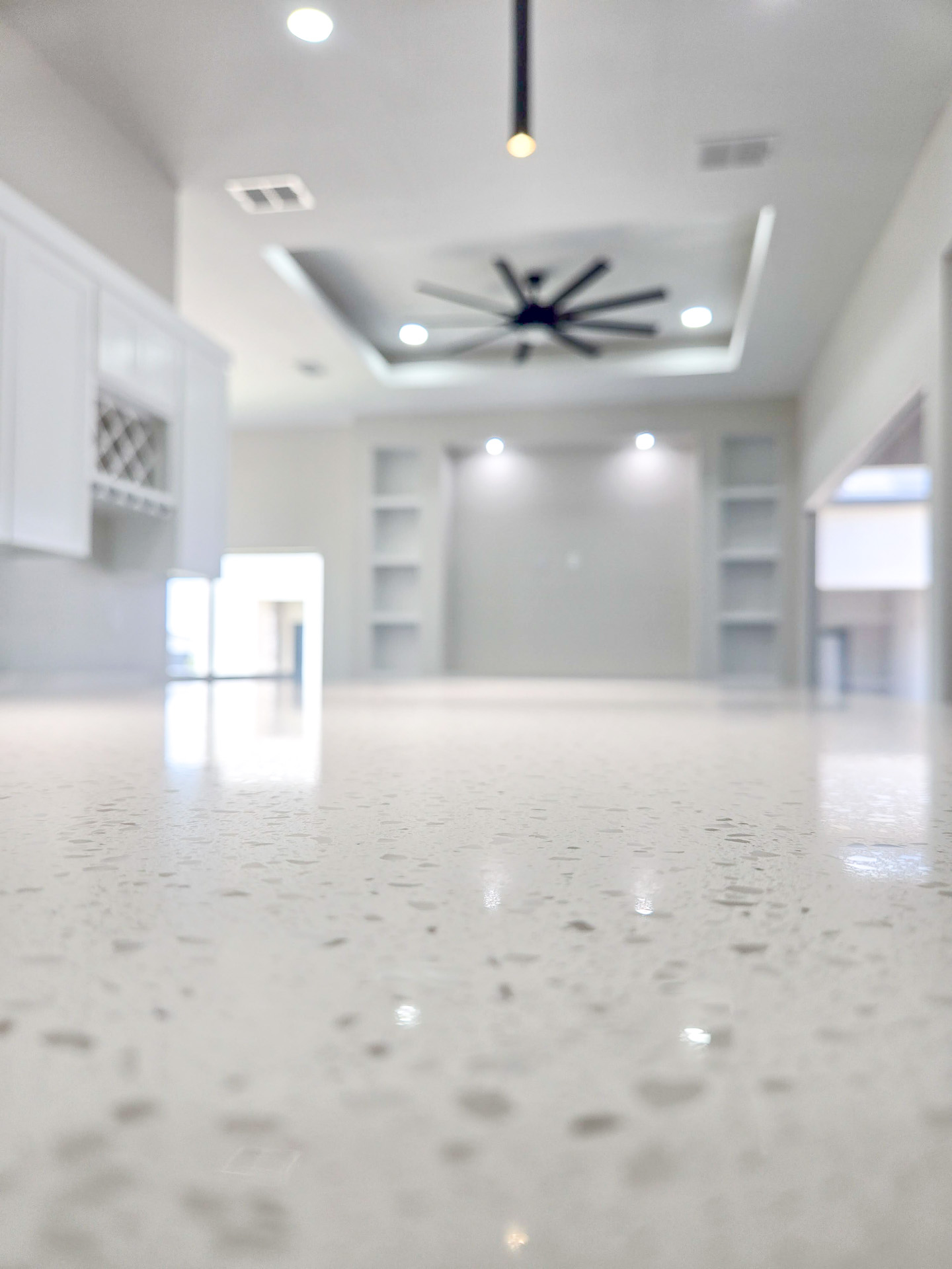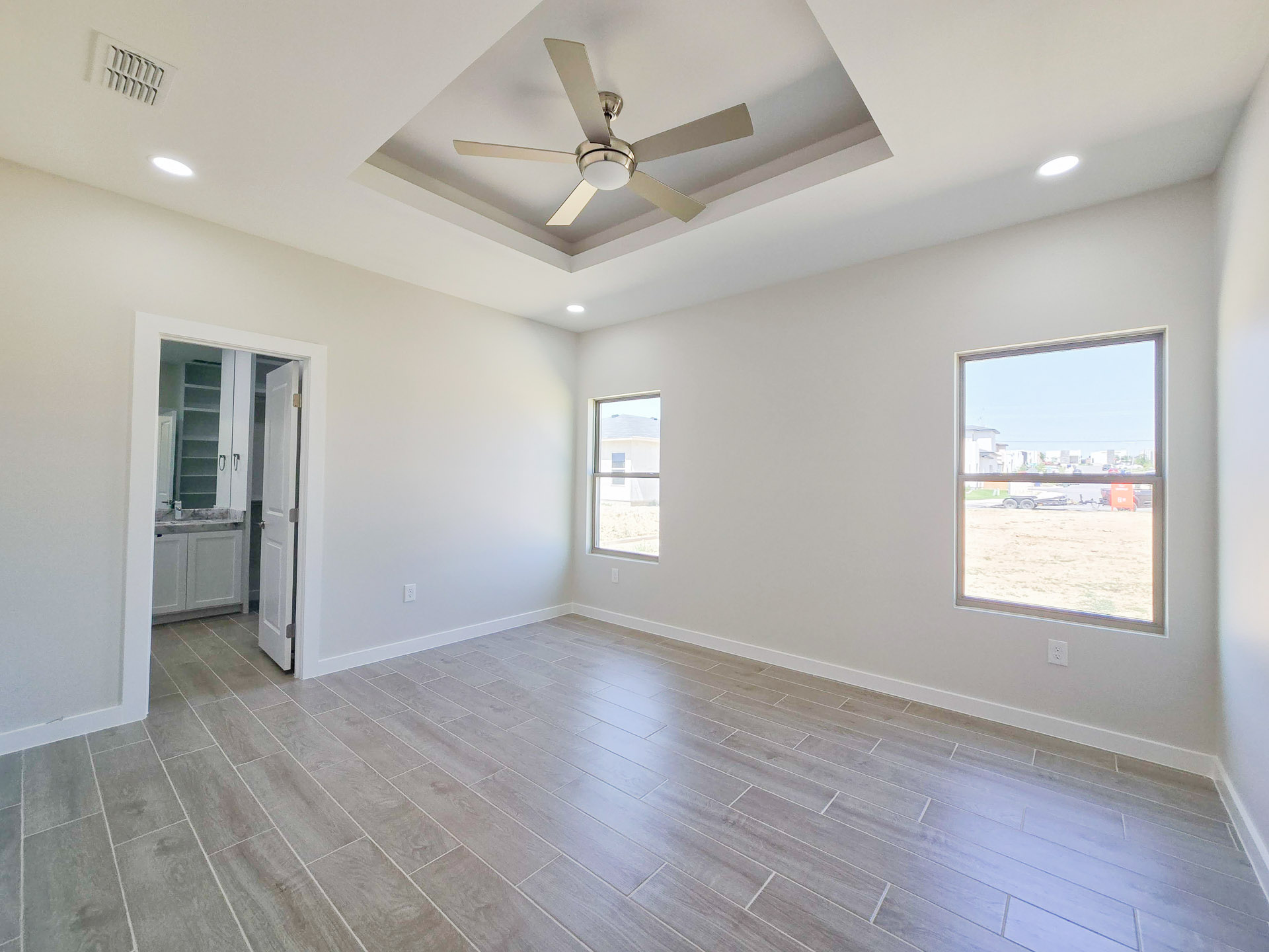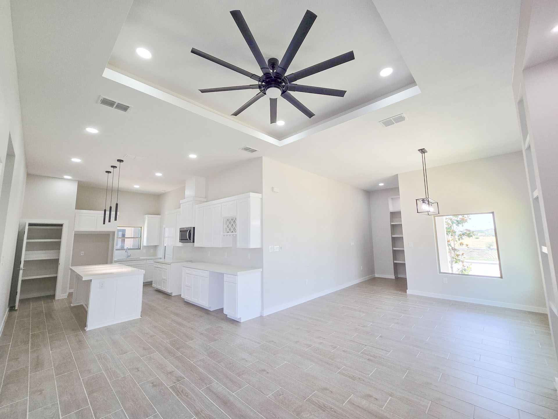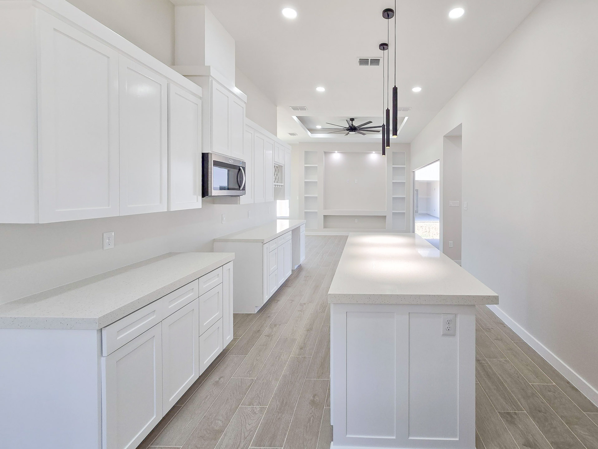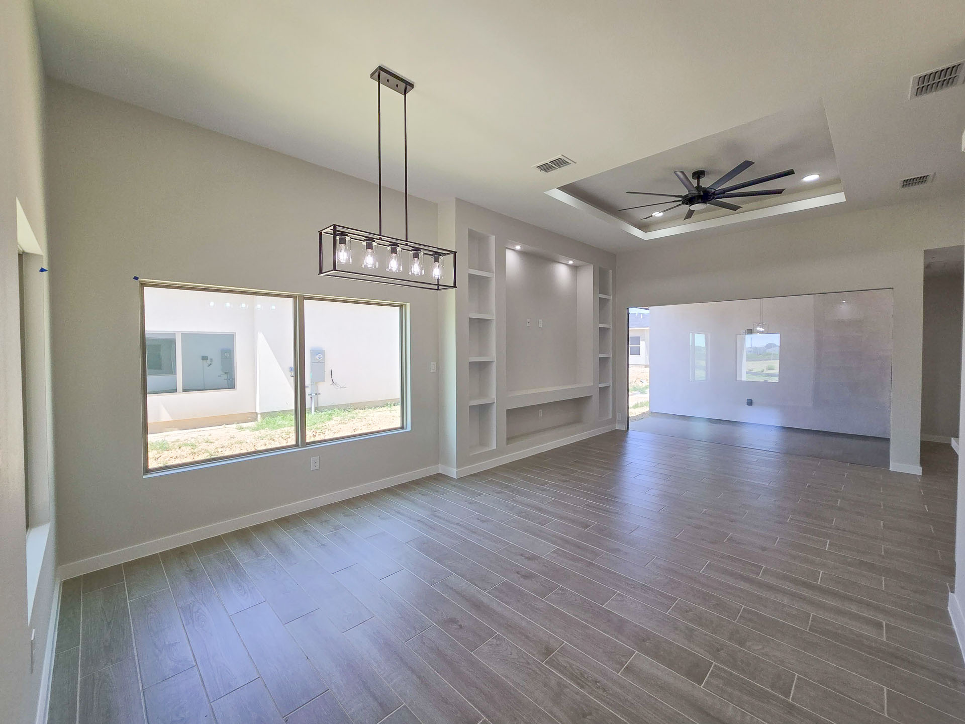 New one-story home at 1119 Morocoy Drive, in Los Presidentes East, with three bedrooms, two bathrooms, and a two-car garage. This model offers high ceilings with design elements that allow natural light ambiance throughout the house.