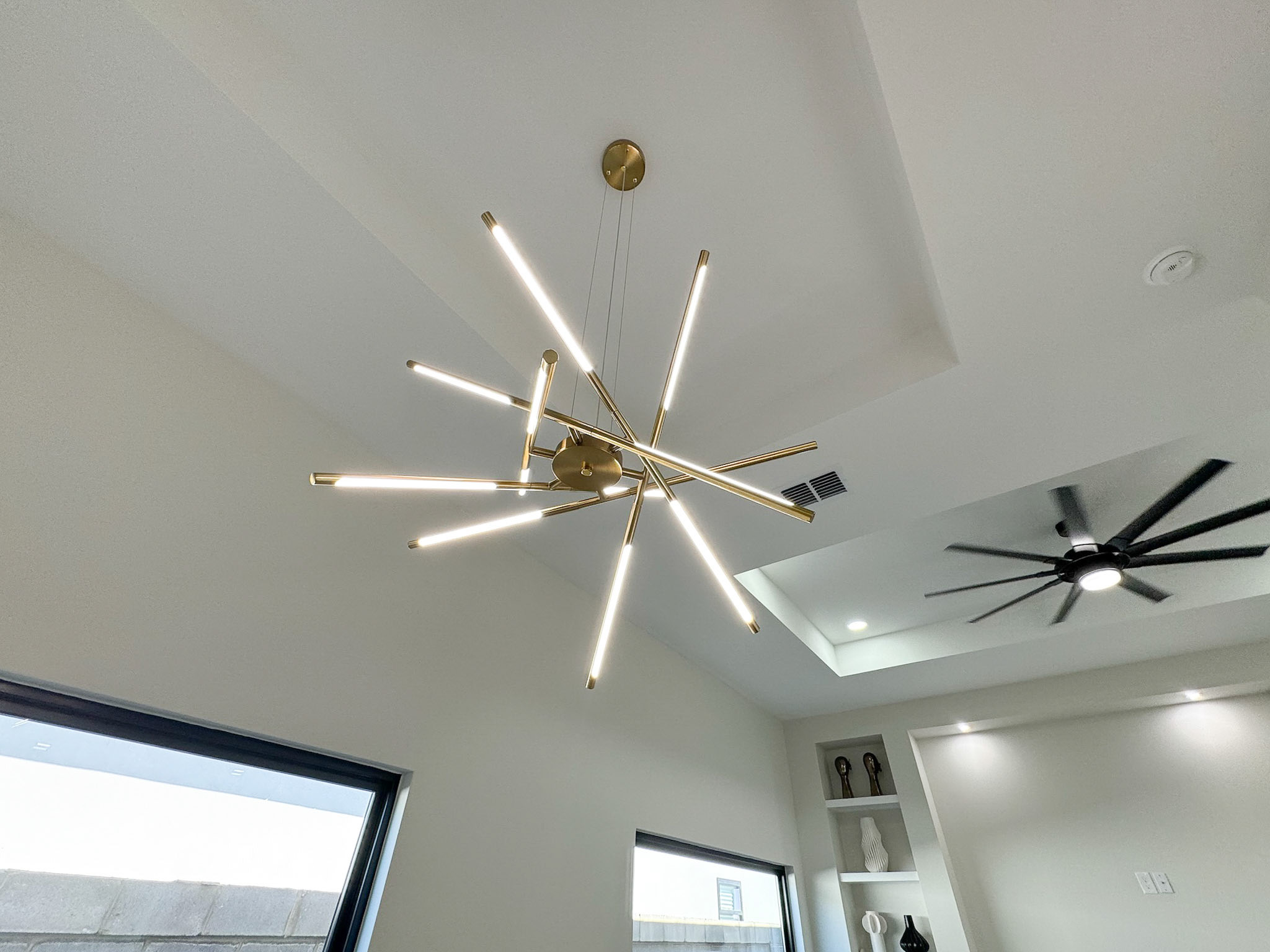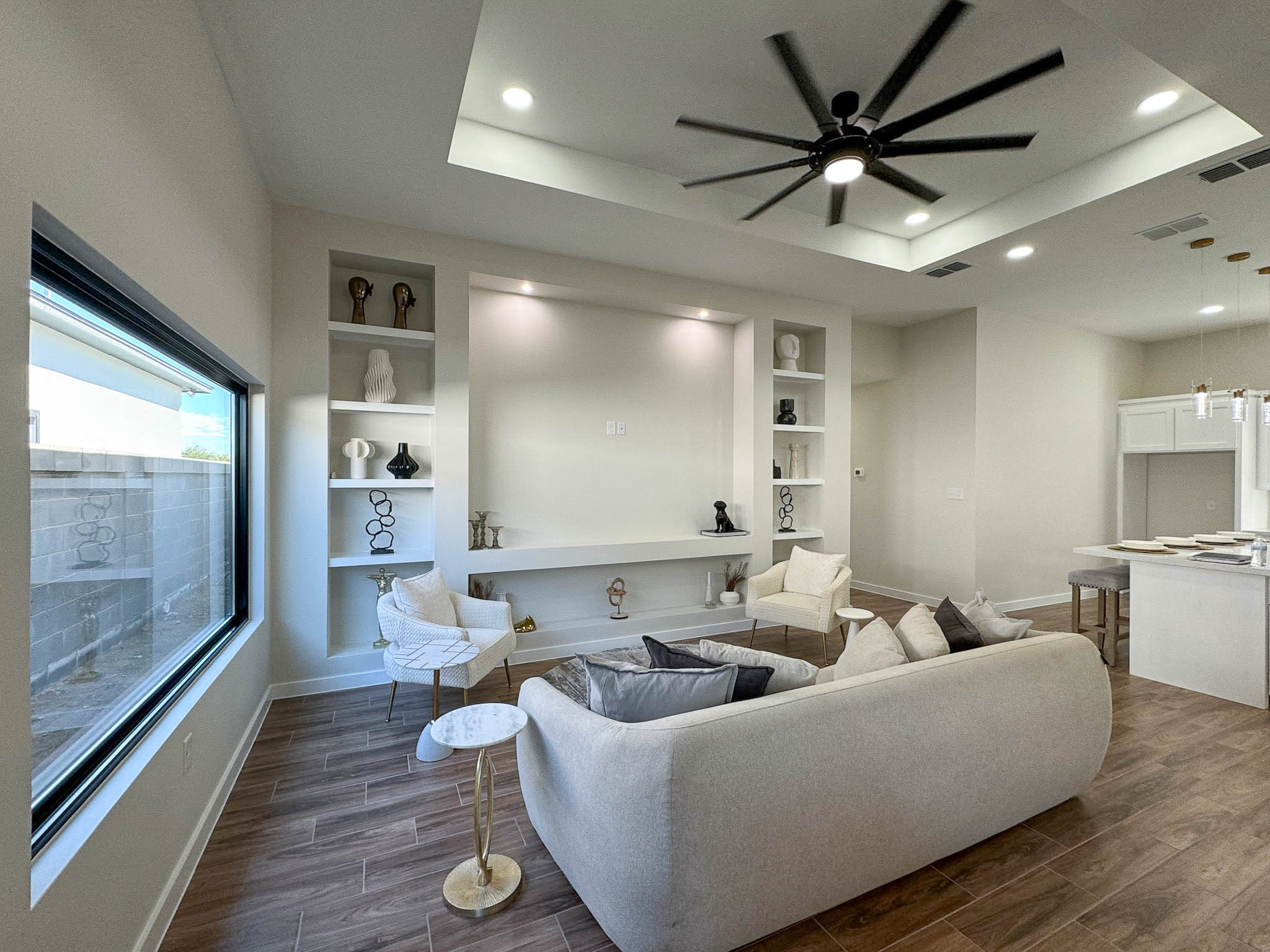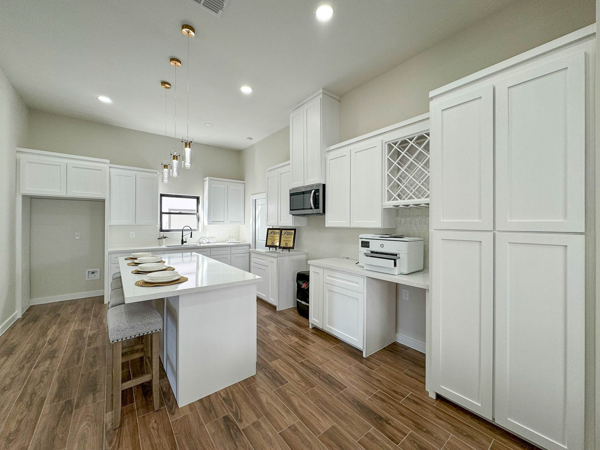 This gorgeous one-story house, with four bedrooms, two bathrooms, and a garage for two vehicles, offers high ceilings with design elements allowing for natural light to spread through the house. Includes a vast array of high-end features such as a private foyer, modern light fixtures, built-in media connections, marble, granite, and quartz finishes, ceramic tiles flooring, and stucco, veneer, and natural stone exteriors.