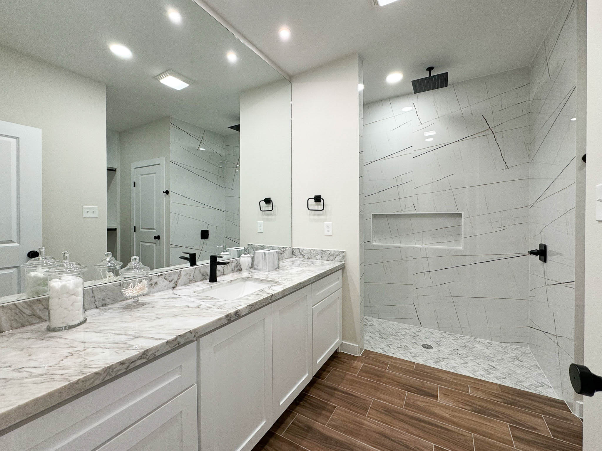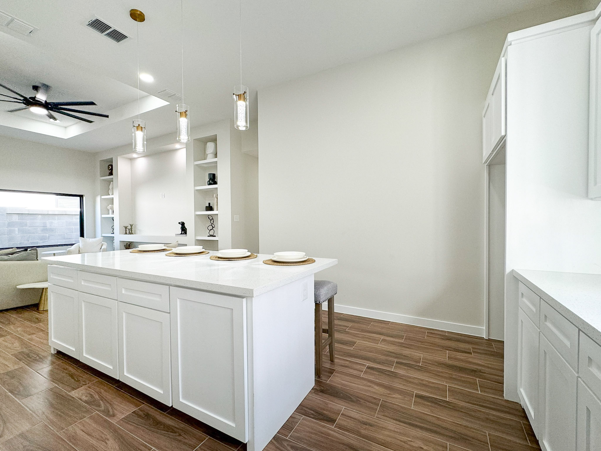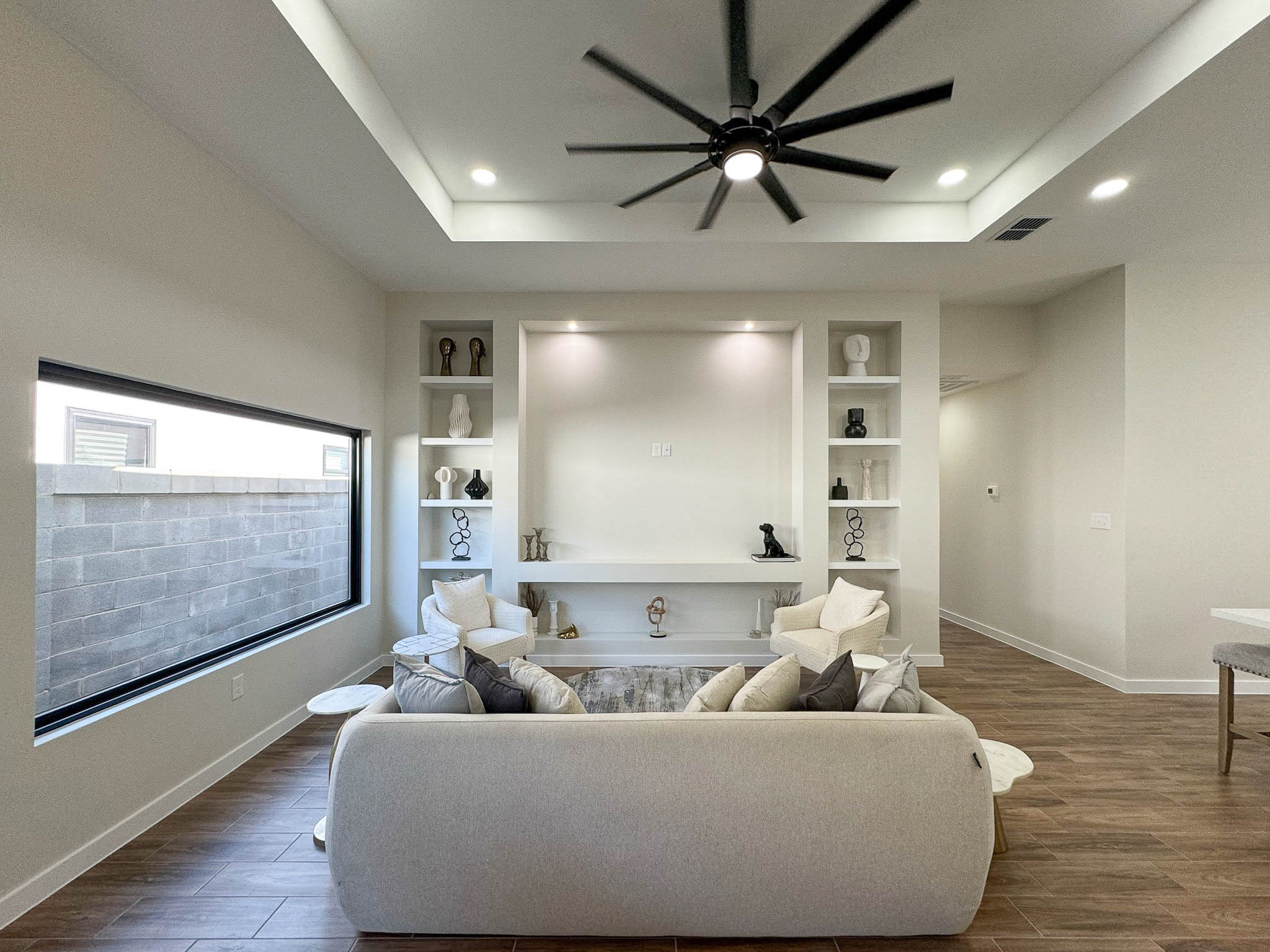 This gorgeous one-story house, with four bedrooms, two bathrooms, and a garage for two vehicles, offers high ceilings with design elements allowing for natural light to spread through the house. Includes a vast array of high-end features such as a private foyer, modern light fixtures, built-in media connections, marble, granite, and quartz finishes, ceramic tiles flooring, and stucco, veneer, and natural stone exteriors.